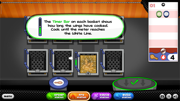 9、每个篮子上的计时器条展示了鸡翅的烹饪时长,在此我们要把鸡翅煮至白线所指的位置。