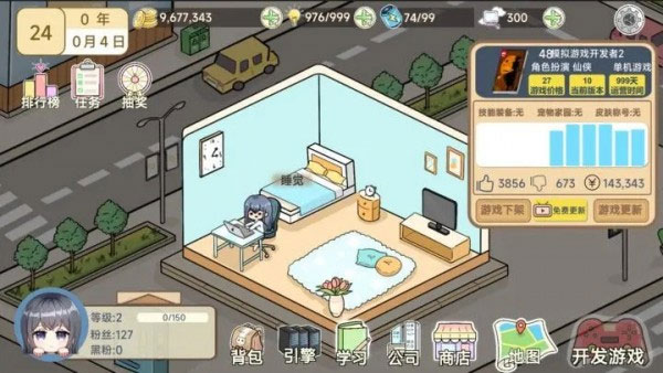 2、通过不断开发并推出成功的游戏作品,你将逐步提升自身等级与技能,解锁更多高级游戏类型、创意元素和制作工具,见证自己从新手开发者成长为行业大厂掌门人。