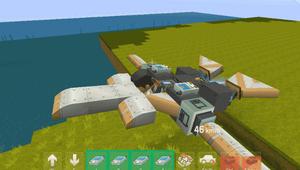 15、在产生推力后按下动作序列器按钮旋转一下机翼,飞机就会飞向天空啦,在飞行过程中,可以通过调整机翼和尾翼进行转向和俯冲等操作哦!