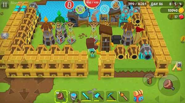 11、后期生存。房子差不多建起来以后,每天要干的事就都差不多了。早上出门先把晚上掉的钱和资源收了。每天都去各种采矿,隔两三天就去打猎打水。打猎盯着鸡和兔子就够了,石剑砍三四下就死了。攒了一定数量的树苗就找个地方种下,回头一口气收光的时候很爽。天黑之前一定要回家。回家先放陷阱,修补墙,然后就回去关好门,烤肉净水上厕所做东西。如果墙被打破拆迁队杀进来,记得找地方躲好保护好自己。不要站在门边,会掉血。