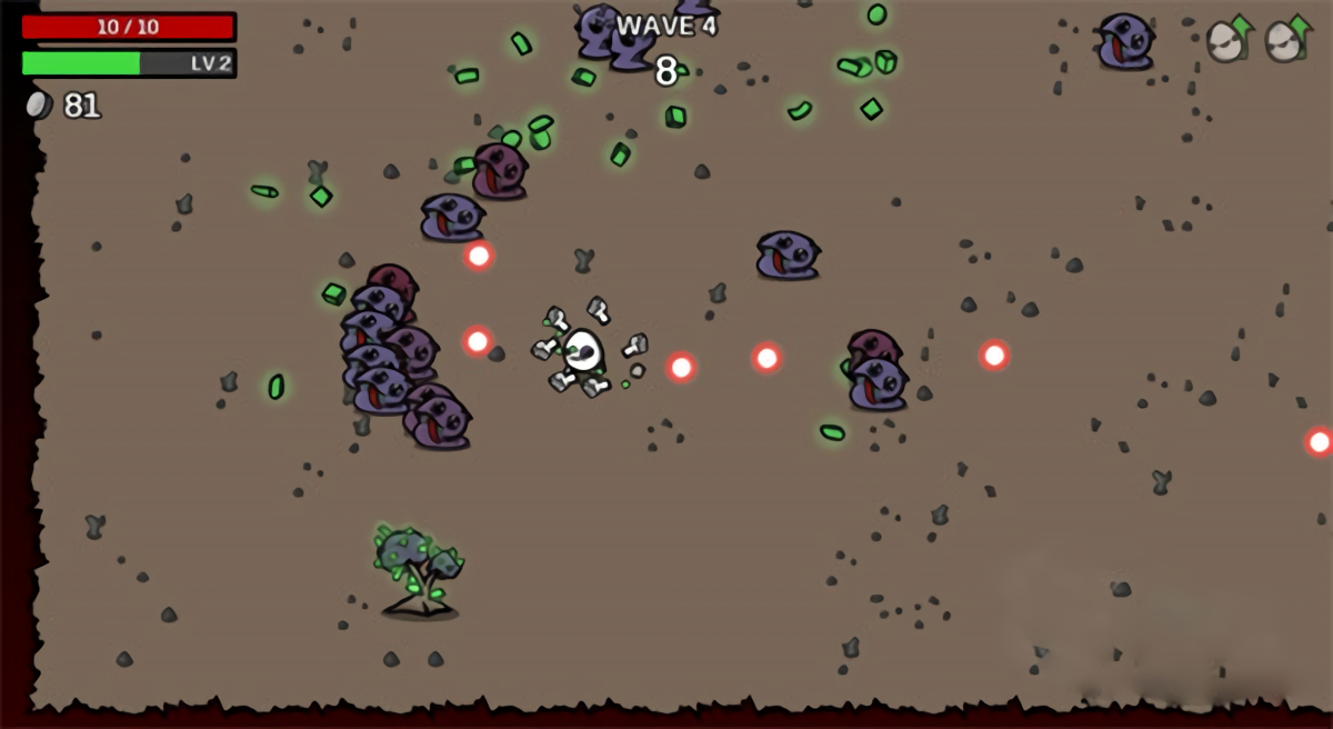 2、收集材料快速获得经验,并在一波又一波的敌人到来间隙中在商店策略购买道具