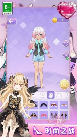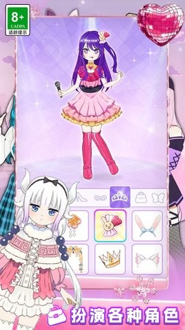 3、通过更换服饰和配饰,探索多种不同的造型风格,玩起来很惬意。