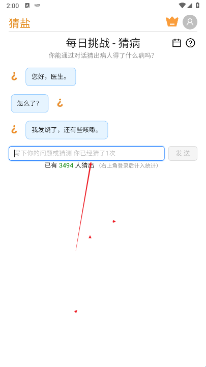 猜病是一款非常创新的游戏,毕竟医学知识是属于专业领域的,不是每个玩家都能有效的猜出正确答案,会更适用于医学行业的玩家,但是又有点简单因为AI病人会直接给出明显的症状,而主要的玩法是用最少的题目为AI病人做出正确的诊断,还是挺有趣的。