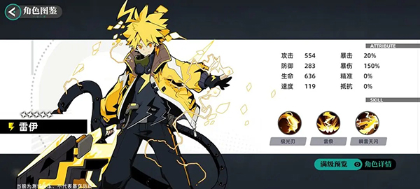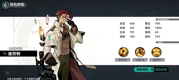 这个角色输出机制是根据其暴击率来判断的,所以各位在使用他的时候只需要不断地去叠加暴击属性就可以了。其一技能是会有百分之四十五的几率提升自己的攻击力,效果可以持续一个回合,同时能够造成暴击的概率会增加至百分百。