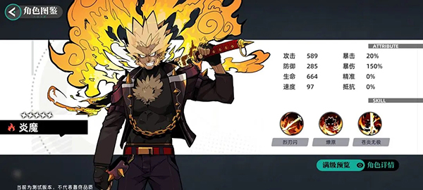 抽卡很容易抽到的角色,火系推主线比较有优势,用火魔去推主线是个不错的推荐,技能有附加烧伤,有概率无视防御!