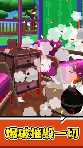 1、无规则限制,可任意选择家具、墙体等场景元素进行摧毁,释放压力。