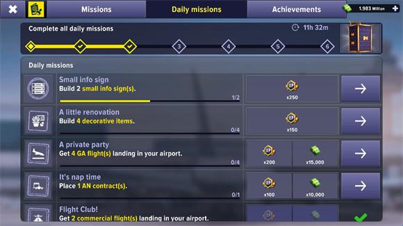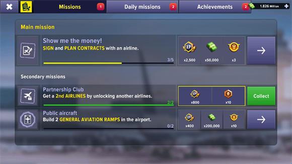 1、玩家可以提升策略,在这里经营好机场,每天都有必不可少的任务来挑战。
