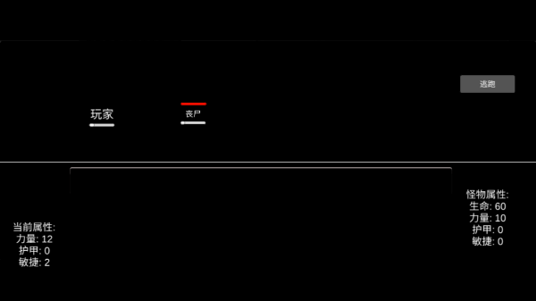 8、如果你选择了攻击变异山羊,可以看到你的护甲替你格挡了3点伤害,而30只对你造成了27点伤害,你的武器对变异山羊只造成了6点伤害,很明显打不过,你必须点击逃跑,才能残喘的活下去。