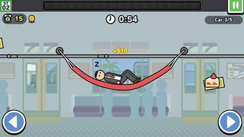 1、基础操作:点击屏幕下方方向键操控吊床左右移动,躲避闹钟攻击,边缘出现感叹号时,预示闹钟即将来袭,需提前调整位置。