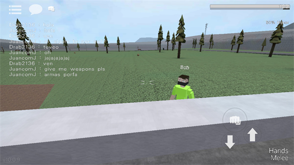 6、滑动屏幕控制视角方向,左边有隐形轮盘可以前进,右下角可以跳跃,点击拳头可以攻击,