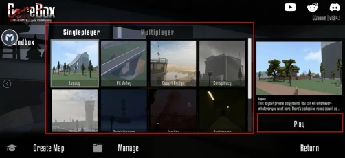 2、进入地图选择界面,有多种地图模式任你选择,你也可以创建属于自己的地图,
