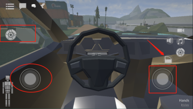 8、我们也能够选择开车,就像图中展示的那样,长按被小编用正方形圈起来的区域,就能进入车内开启赛车奔跑模式(箭头所指方向就是主人公你哦)。