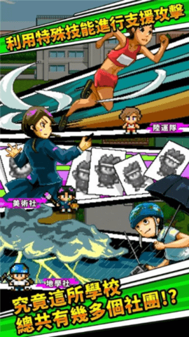 勇者帰宅部集合了丰富玩法和元素,作为一款像素风的经营游戏玩家可以加入勇者的社团,魔性搞怪的剧情不断挑战各个社团团长提升知名度,有趣的校园设定以及各个社团轮番登场,操作点击配合自动释放技能玩家只需要完成作战思路即可,丰富的道具在对战中可以发挥神奇效果完成致命一击。