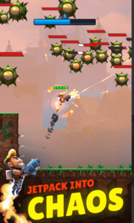 1、喷气背包战斗与弹幕混战:在流畅高速的空战中闪避、冲刺,称霸战场。