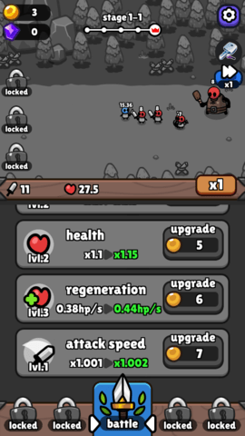 通过战斗和闲置收益获取资源,用于强化军队或重置游戏(保留升级)以积累金币。声望系统鼓励策略性重置,每次重启后挑战难度提升,带来渐进式成长体验。