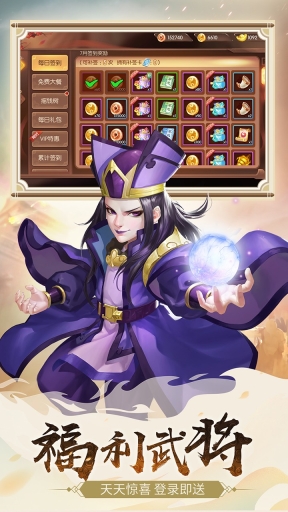 3、拥有完备的神将养成系统,玩家不仅能够通过挑战各类副本,收集众多实力强劲的武将,还可以依据武将的属性来进行战力培养。此外,每天登录游戏并在系统中签到,还会有相应奖励赠送。