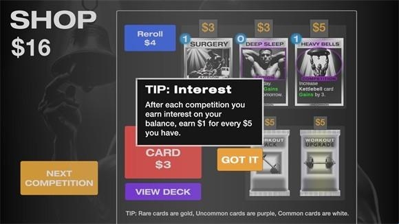 7、比赛胜利后会获得金币奖励,金币可用于购买新的训练卡牌,持续挑战更强的对手,向健身冠军的目标迈进。