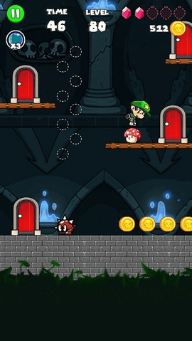 2、丰富道具系统:多样道具助力冒险,蘑菇让角色变大,花朵赋予火球技能,星星带来无敌状态,延长生命值并跑得更远。