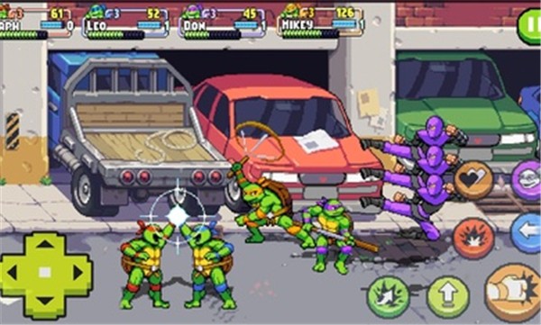 《忍者神龟:施莱德的复仇》是一款人气超高的街机格斗游戏。它从端游移植而来,以忍者神龟为主打题材,经典角色在游戏中得以重现,像莱昂纳多、米开朗基罗等四只神龟角色皆在其中。每个角色都拥有独特技能,能让玩家收获截然不同的游戏感受。游戏设有多个章节,各章节的 BOSS 不尽相同,玩家得操控角色在躲避敌人攻击的同时将其歼灭。而且,这款游戏还支持联机游玩,趣味性满满,快来下载体验吧!