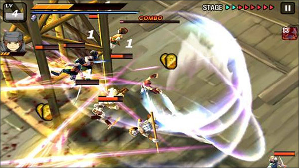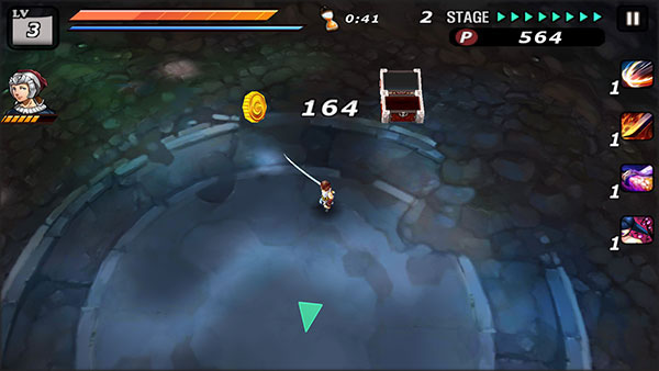 如果手指点在屏幕上向某一方向快速滑动,而且该方向有敌人(非BOSS),角色就会发动绝杀技,瞬间杀死该名敌人并回复一定的血量,会消耗大量耐力