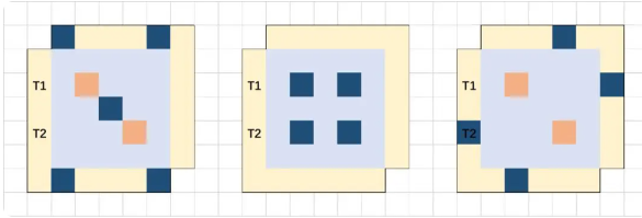 之后T2去捡补给包,T1解决掉M1后,T1和T2分别躲到上面和下面的中间位置,然后其中一队经过中间的医疗包,从地图右边接近boss(如下图所示)。