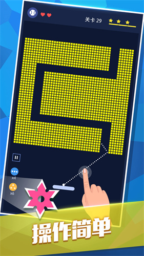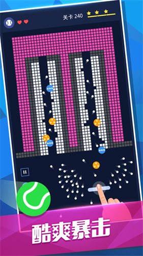 2. 通过发射砖块来突破层层关卡。操作控制简便,容易上手。游戏内设有695个免费检查站。