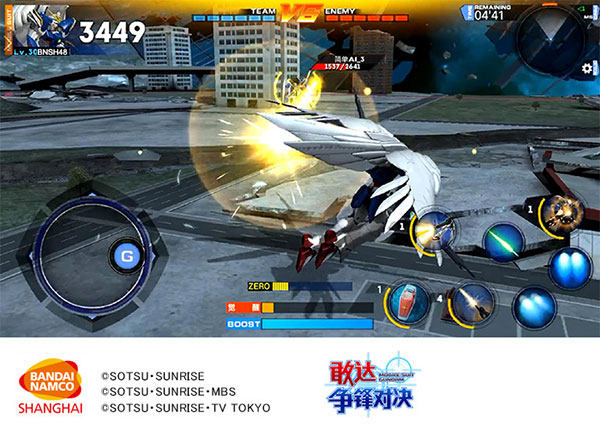 敢达争锋对决以硬派动作风格为主打特色,运用3D物理碰撞、受力反馈、重力补偿、动态镜头等次世代技术,将驾驶敢达作战时的操控体验进行了完美模拟。游戏能呈现出达到主机级手感的移动、侧滑、喷射、飞行、射击、格斗、格挡、控制、浮空连击等多样化战斗效果,彻底颠覆你以往对手游动作体验的认知!