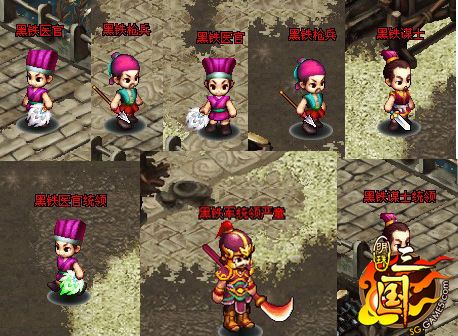 破军阵里的怪物与BOSS,已不再是30河东废墟中的那些。在破军阵副本中,怪物与BOSS共有三类,其中怪物有黑铁医官、黑铁枪兵、黑铁谋士,BOSS则是黑铁医官统领、黑铁谋士统领以及黑铁军统领严童。