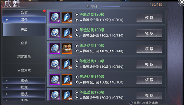 综合栏分为等级、金币、绑定魂晶、公会贡献4项。勇士可以通过达成不同的等级,获得不等数量的金币、绑定魂晶,以及公会贡献,从而获得相对应的成就。
