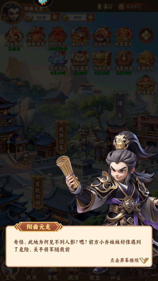 集中资源养核心:不要分散资源平均养成所有武将。集中资源(金币、经验、升星材料、升阶材料等)优先培养2-3个核心输出武将和1-2个核心辅助/坦克武将,让他们在前期形成战力优势。