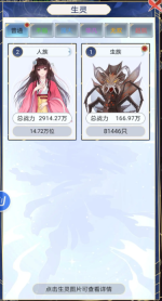 当你刷到390个后,要是只有人族,战力大概在8亿上下。此时将世界等级升满,点击孕育种族。我不确定是不是升级世界后首次孕育必定会出现对应颜色的种族,我当时直接就刷出了红色天妖族。紧接着把天妖族的属性点满,战力提升得特别快,基本上就能通关了。后来我每次点击福泽天妖族,战力都会增加0.15兆左右。