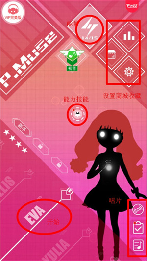 2、如图所示,在这里先介绍一下游戏界面的意思,不然容易找不到游戏开始的位置,有商城收藏设置等等可以看到