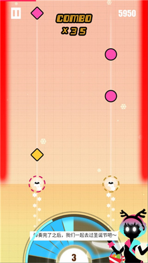 7、进入游戏,初始状态下通常仅有一条线,只需用手指点击线所在位置。当方块进入横行时,点击一下即可。随后,随着节奏推进,线条会逐渐增加至3条,甚至更多。此时,手指需把控好节奏。值得一提的是,游戏里的歌曲十分动听,戴上耳机体验更佳。