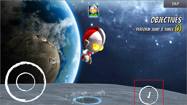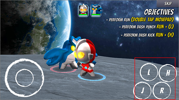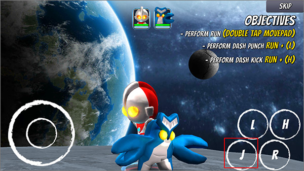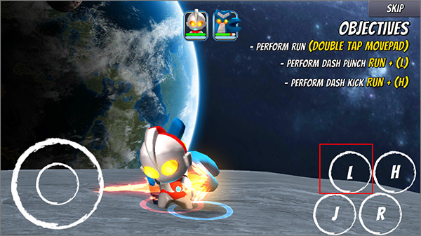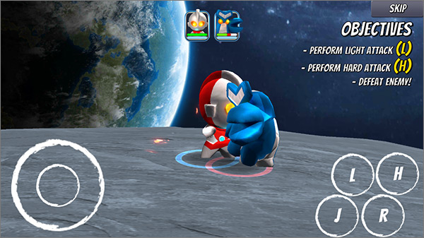 2、“I”按钮可控制奥特曼跳跃到空中对怪兽造成伤害;