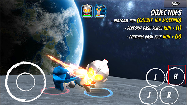 4、“H”按钮可释放技能脚踢怪兽并对它造成伤害;