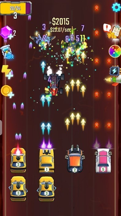 1、在银河汽车狂暴骑士游戏的比赛期间,您可以收集大量金币来改善您的赛车。