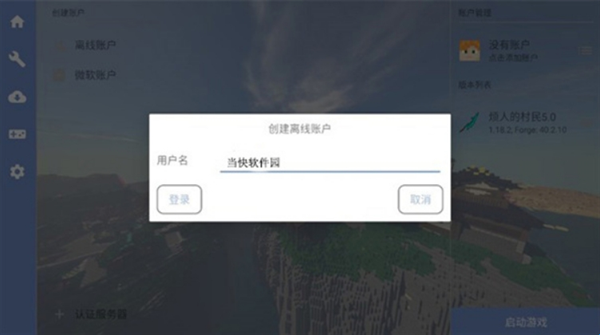 2、想要玩什么类型就选择账户类型,简单点就选择离线账户。
