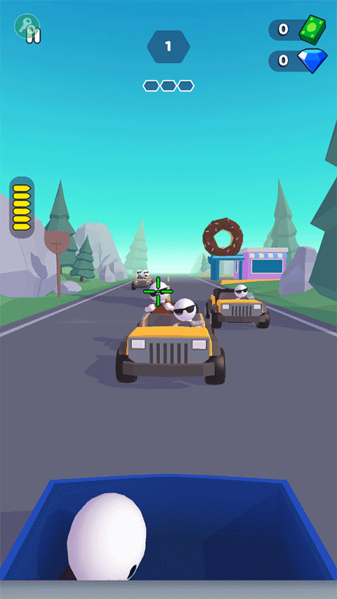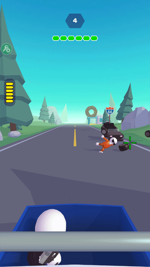2、战斗过程可对敌人进行射击---头部、车轮等,敌人以车辆为单位出现(1-4人/车),击打司机、车轮都可直接淘汰该车辆。
