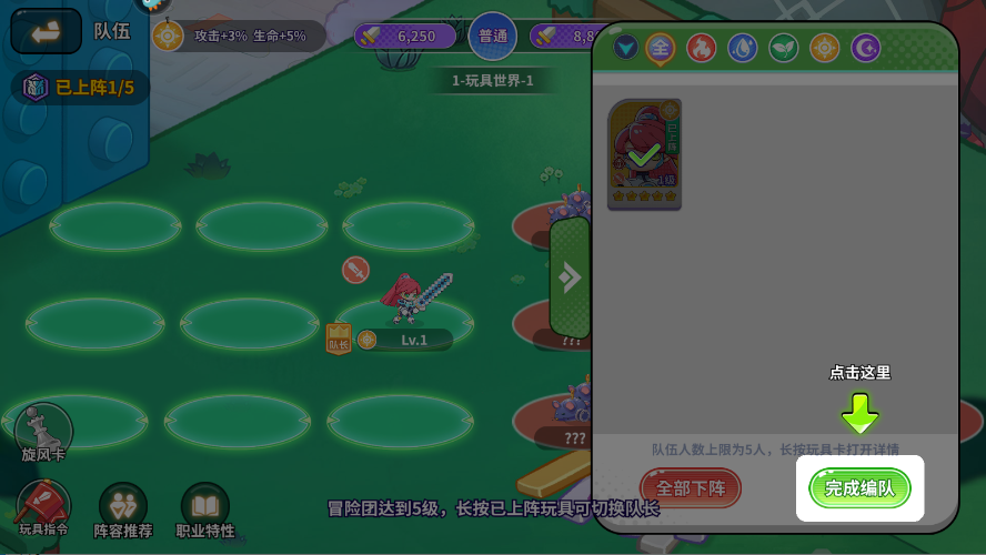 1、进入玩具指令手游后,我们可以自己进行配队;