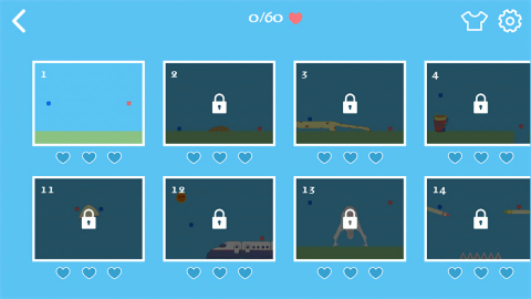 点击屏幕画线使小蓝和小红相遇,画线越短,获得的爱心越多。注意线条长度有限制,且游戏采用 3 心评分机制,划线越简洁评分越高。