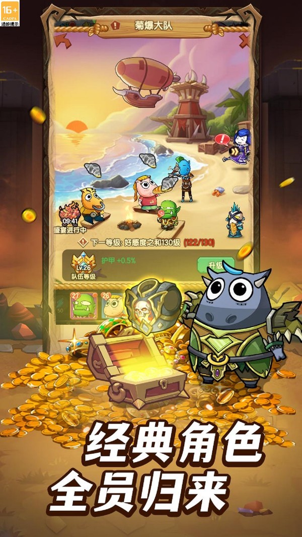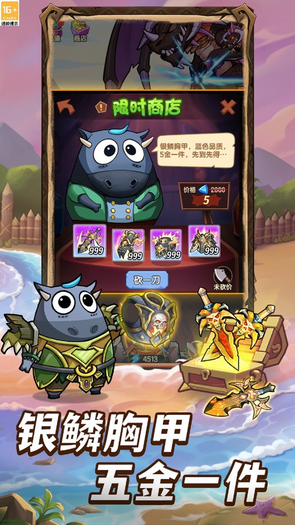 采用流行的挂机开宝箱玩法,前期玩家手动打怪获取宝箱,开出各种品质的武器、装备。达成相应任务条件后,即可开启挂机模式。升级段位能提升装备品质掉落几率,玩家即便离线,也能持续获取资源,轻松提升实力 。