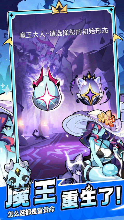 玩家可选择转生为擅长魔法攻击的史莱姆或擅长物理攻击的蜘蛛子,从一颗蛋开始,逐步成长为终极大魔王,体验不一样的成长路线。