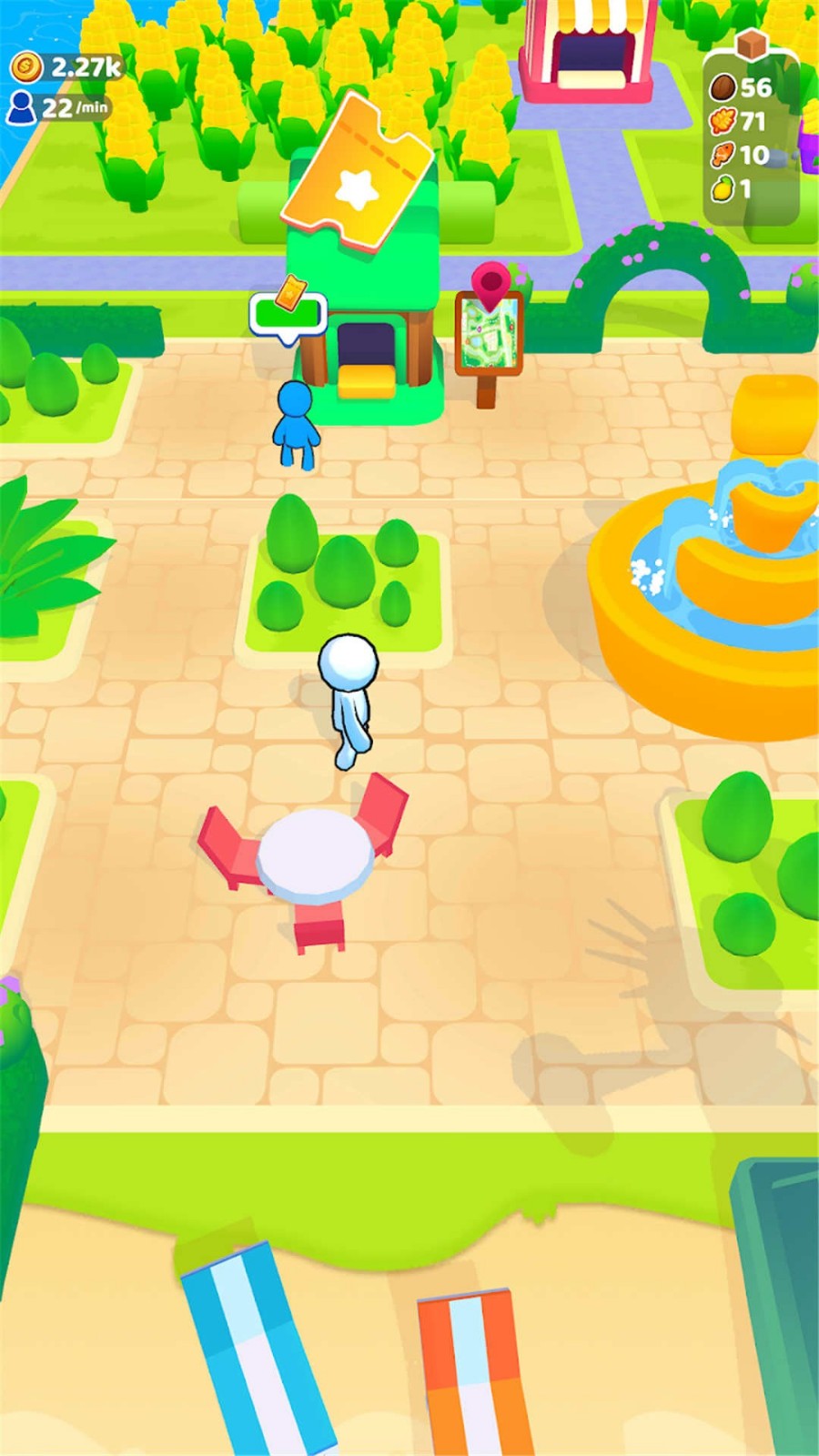 玩家作为小镇的缔造者,从零开始发展家园。通过点击操作砍伐树木,收集木材等资源,再利用这些资源建设房屋、商店、休闲区等场所,不断丰富小镇布局,并合理安排建筑布局以吸引更多顾客。