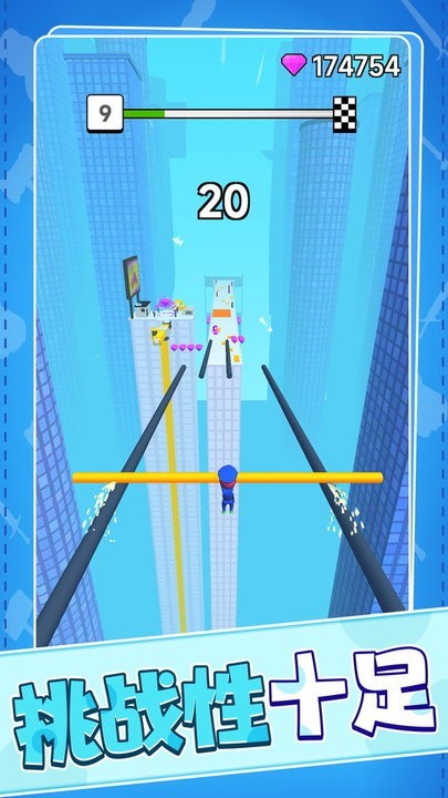 创新引入手持长杆跑酷玩法,玩家通过收集木材动态调整杆身长度,在跨越高墙、跳过深渊等情况时,需要精准控制长度,既考验冒险冲刺的勇气,又需要策略判断。