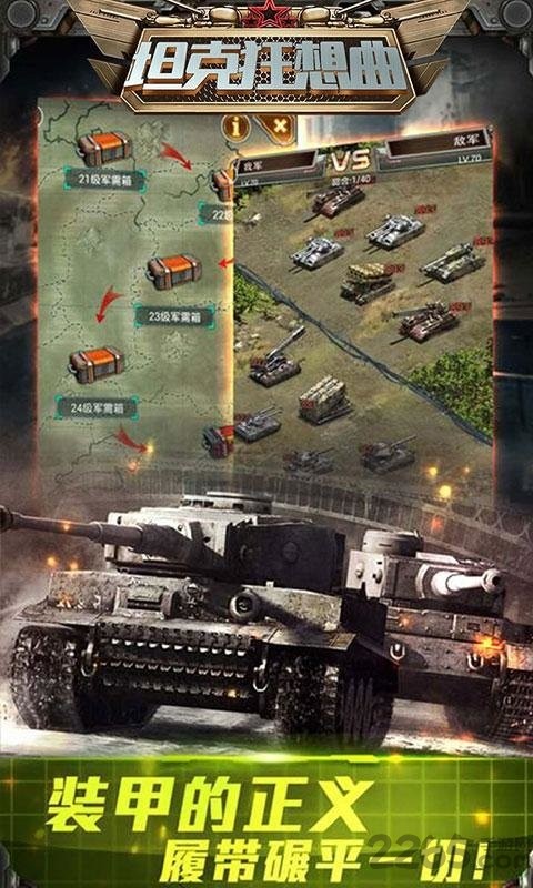 坦克狂想曲是一款策略养成游戏。游戏以二战为背景,汇集了众多经典坦克战役作为游戏线索,完美展现了二战时期陆战堡垒在战场上的统治能力,将炮弹横飞、火光冲天的战场刻画得淋漓尽致,以极致写实的画面,带来前所未有的战争体验。