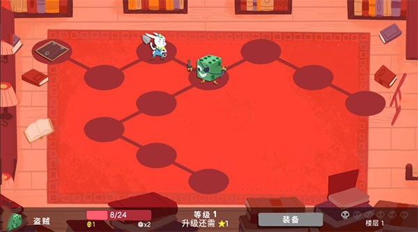 玩家掷出骰子后,需根据点数将其分配到装备或卡牌上,以触发相应效果。装备包括消耗品、耐久装备与特殊道具,每个职业的装备和技能都不一样。