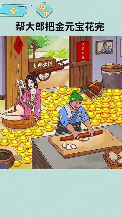颠覆传统找茬的单一目标,将 “找差异” 与 “花金钱” 深度绑定:场景中需寻找的 “不同之处” 本质是可消费的对象 —— 在 “强哥致富” 关卡中,破碗、旧床、菜刀等看似普通的物品均为差异点,拖动金钱至这些位置即可完成 “升级置换” 消费;在 “拆迁款改造” 关卡中,土坑、旧屋等场景元素需先通过找茬识别,再搭配道具(如铲子)触发消费交互。这种设计让找茬不再是单纯的观察力考验,而是转化为 “通过细节发现消费渠道” 的策略过程。