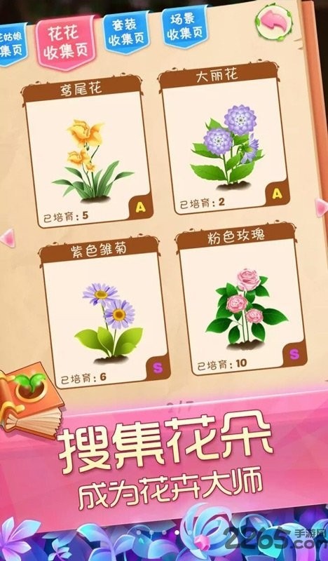 种植与培育:玩家在商店购买种子后,播种到花园中,通过定期浇水、施肥等操作,确保植物健康成长,花朵成熟后可点击花朵召唤套装组件。
