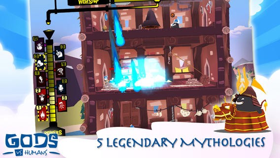 屏幕上方设有红色与蓝色对抗槽,红色代表人类的愤怒,蓝色代表满足程度。玩家需合理使用法术,避免过度刺激人类,否则会导致他们加速建塔。