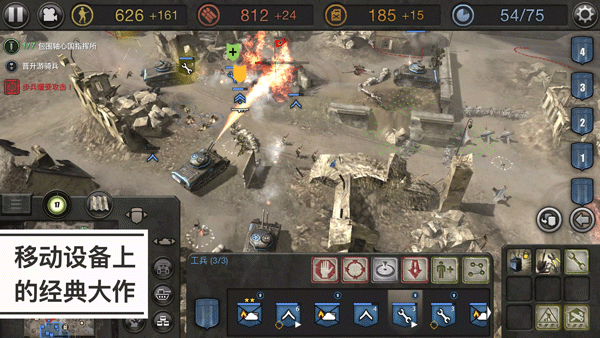 作为PC经典移植作品,游戏针对移动端触控特性进行了操作适配,简化了复杂的键鼠操作,通过虚拟摇杆与快捷指令按钮,让玩家可快速完成部队征召、战术指令下达、资源调配等核心操作。同时保留了PC端的策略深度,实现了“轻量化操作+硬核策略”的平衡,让即时战略爱好者随时随地都能体验指挥乐趣。